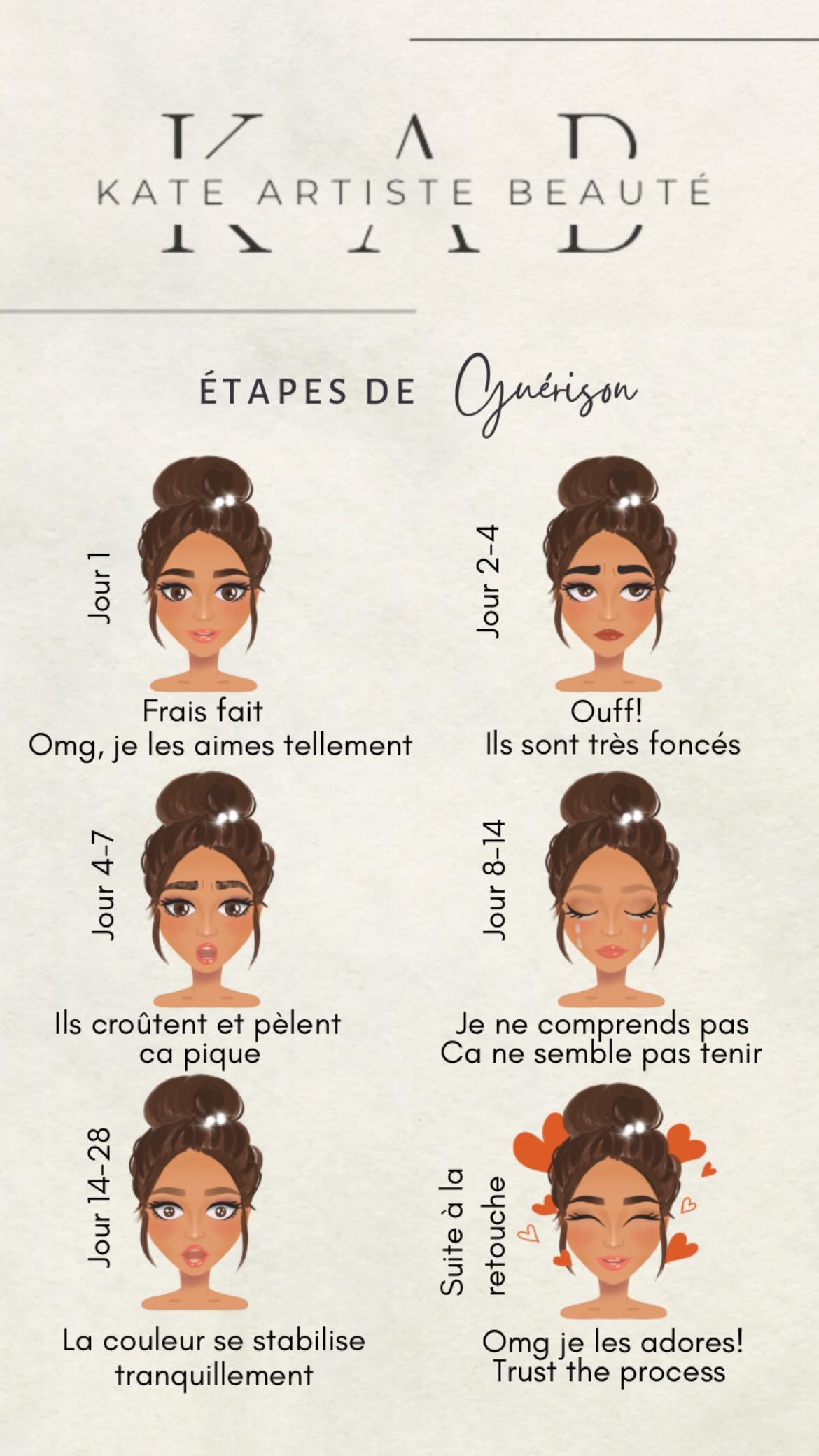 - Retouche : Une retouche après 6 semaines est nécessaire pour corriger les petites imperfections qui pourraient apparaitre après la guérison.